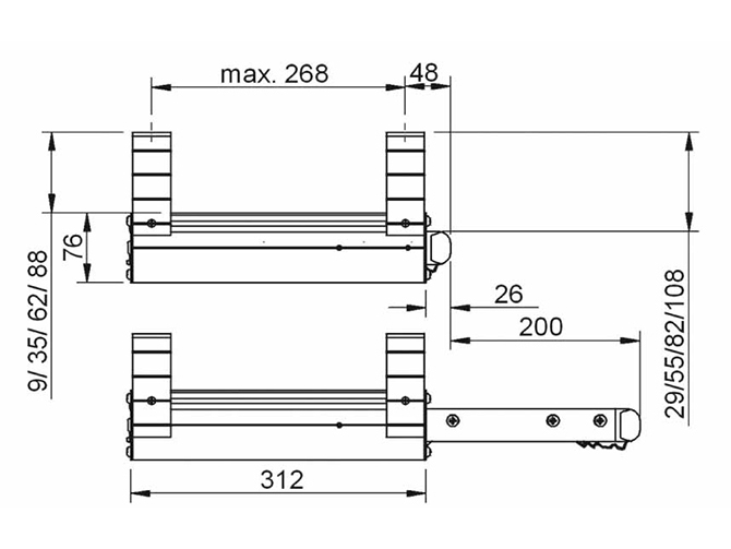 一般房車(chē)中門(mén)建議使用700寬度的踏步,前門(mén)使用400寬度的踏步,踏步標(biāo)配為電動(dòng)手按開(kāi)關(guān)。