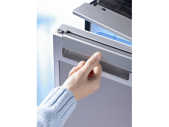 2. 特有的嵌入式門把手感舒適,方便開關(guān)。修長(zhǎng)的門把設(shè)計(jì)與冰箱門的優(yōu)雅渾然一體。